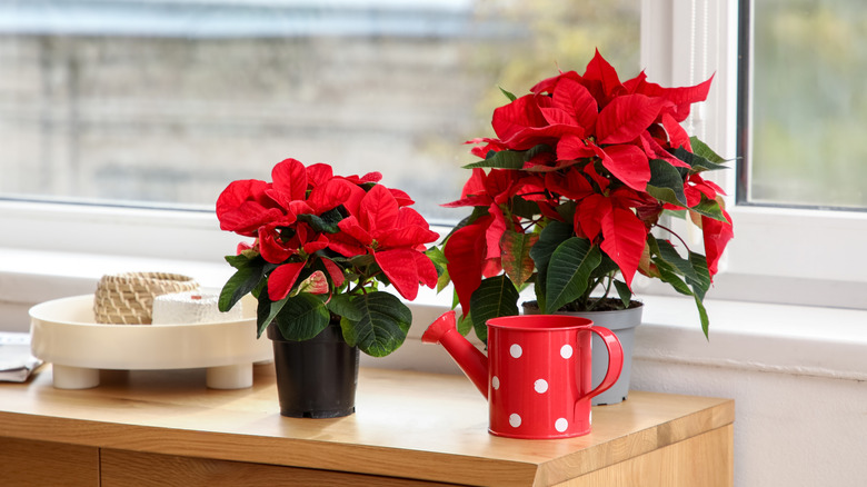 Rather than watering poinsettias on a schedule, keeping tabs on soil and foliage are more reliable ways to figure out when to break out the watering can. When Hunker spoke exclusively with expert plant stylist Hilton Carter, he told us that the schedule will depend on your plant's environment. "Depending on where your poinsettias are hanging out — sunny window, cozy corner, or near a heat vent — you might find yourself watering them every two to three days," he explained.