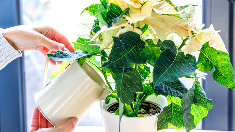 Fortunately, there's no arcane secret to watering a poinsettia. When Hunker spoke exclusively with plant expert Hilton Carter, he said that properly watering poinsettias is just like watering most other potted plants. "Give it a deep, thorough soak, letting that water run through and out the drainage hole," he said. "That's how you know it's quenched."