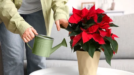 Learning what the plant needs is simple. "Give the top inch of soil a little poke — if it feels dry, it's time for a drink," Carter explained, adding that you can look for sure signs of thirst in the soil, the plant itself, or even its pot. A wilting poinsettia is in need of care ... and probably water. "You can tell a poinsettia is thirsty when its leaves begin to curl inward, almost as if they're whispering for a drink. The soil dries out, the pot feels light in your hands, and the plant itself leans, top-heavy and unbalanced," he said.