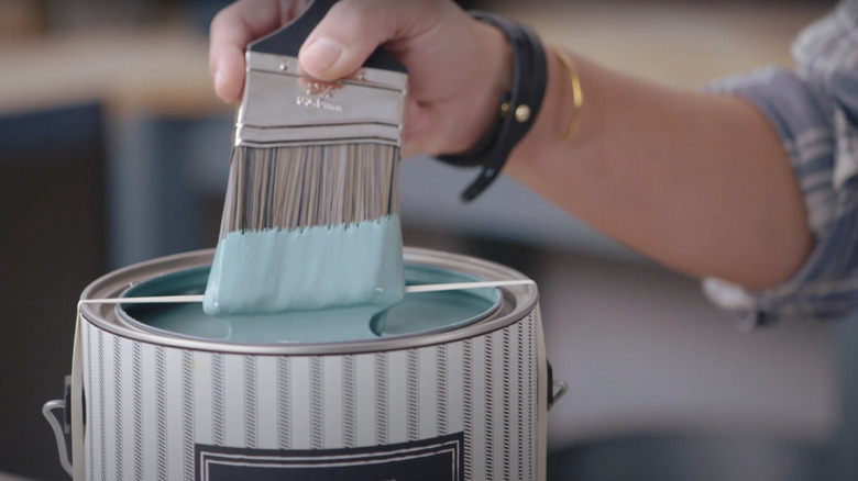 Another facet of her design empire, Gaines also owns her own line of Magnolia Paints made in partnership with KILZ, where each color is meticulously crafted to be a perfect shade for Gaines' many unique projects, such as the Castle and Lakehouse Collections. Therefore, it should come as no surprise that, between the paint shop and many deeply personal design projects, Gaines has a wealth of knowledge when it comes to clever paint tricks to make the job easier and smoother. She shared one simple, genius hack on YouTube that she calls "The Rubber Band Trick," which prevents paint from getting on the edge of the paint can by wrapping a rubber band across the opening and using it to wipe the brush. Not only does this easy hack work to keep paint cans clean, it also helps control the amount of paint on the brush and leaves the can in prime condition for long-term storage. Let's jump in!