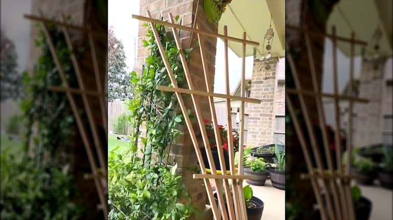 Fan trellises are a must-have for gardeners who want to make a big impact with a small amount of space, though they're great for sprucing up any yard. They aren't ideal for heavy vegetables, but they look stunning with vining plants weaving up and across the beams. Consider growing climbing roses or other flowering vines to add a pop of color along with vertical interest. While store-bought versions can be pricey, TikToker @buildtomade shared a clever hack to create your own stunning fan trellis using nothing more than a single wooden fence picket and a few basic tools.