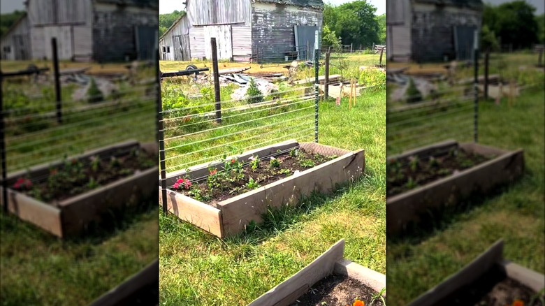 Create any size trellis around your raised bed with T-posts and twine