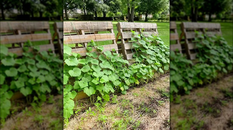 Transform wood pallets into an A-frame trellis