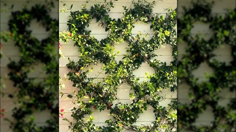 While a fresh coat of paint can be enough to glam up your home's exterior, you can kick it up a notch by adding a sleek, diamond‑pattern cable trellis that lets vines transform your wall into a textured green accent. This hack is perfect for anyone who wants that eye-catching lattice look without dropping money on a store-bought panel. It's great for ivy, honeysuckle, clematis, or any other vining plant that will happily latch onto the wire to create the geometric shapes. You can use this setup to decorate a fence, create a planter box backdrop, or make a portable trellis with a detached freestanding frame.