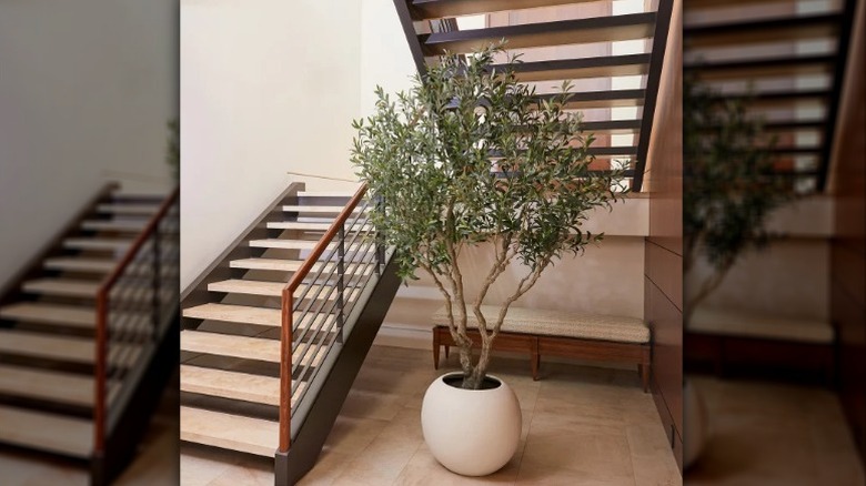 It turns out, however, that while real olive trees are relatively low maintenance as far as care, they are also quite slow growers and can take a minimum of 10 years to reach maturity, and another five to 10 years to reach their maximum height. While fake plants in the home can be considered either an evergreen solution or tacky, the biggest plus is that you won't have to worry about any pruning, watering, or branch training, and you can trust that it will stay in the architecturally stunning pose you brought it home in (so long as you can keep it upright and away from climbing and nibbling children and pets that is). Plus, the only maintenance that this tree will require is an occasional dusting to keep it looking neglected.