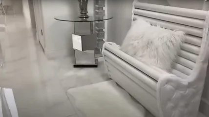 If you'd like to add tufting to the outer side of the panels like in the video, use your staple gun through the foam to the plywood to create the indent and cover with a hot-glued button. Just be sure to clear the flanges underneath the foam before placing your outermost tufts.