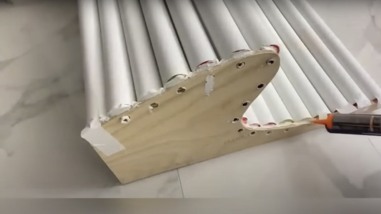 One such DIY was shared by Yoduvh Essentials on YouTube, where the maker, Yvonne, created a modern horizontally-channeled chair using pool noodles as the basis for her seat and upholstery foam. The faux-leather-wrapped noodles are held in place with copper pipes slid through the middle and two plywood side panels for support. While the premise is extremely clever and there's a lot to love about the incredibly layered DIY project, after some trial and error, the DIYer herself suggested there might be other ways to approach the project for added stability. And absolutely not knocking Yvonne's efforts in the slightest, we've used her process as a jumping off point and brainstormed a few alternative methods to improve chair stability and refine the finished look so you too can create this amazingly smart pool noodle chair for yourself. So using the YouTube video for reference and a few fresh steps, let's dive right into this moderately-advanced DIY that is sure to impress.