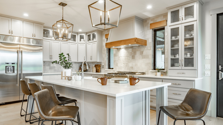 Wood cabinets' rustic appeal makes them a great choice to tie in a warm, natural element in the kitchen. There are so many options like white oak, cherry, and maple that many designers view wood cabinets as an excellent and timeless choice. However, not all designers are on board with this trend. Hilary Farr, the popular and well-regarded designer from HGTV, pushes back on this consensus, specifically speaking out against stained wood grain cabinets in the kitchen. In an exclusive interview with Apartment Therapy, she says that the stained wood grain takes away from the overall kitchen aesthetic by feeling out of place if there isn't another feature that matches the same aesthetic.