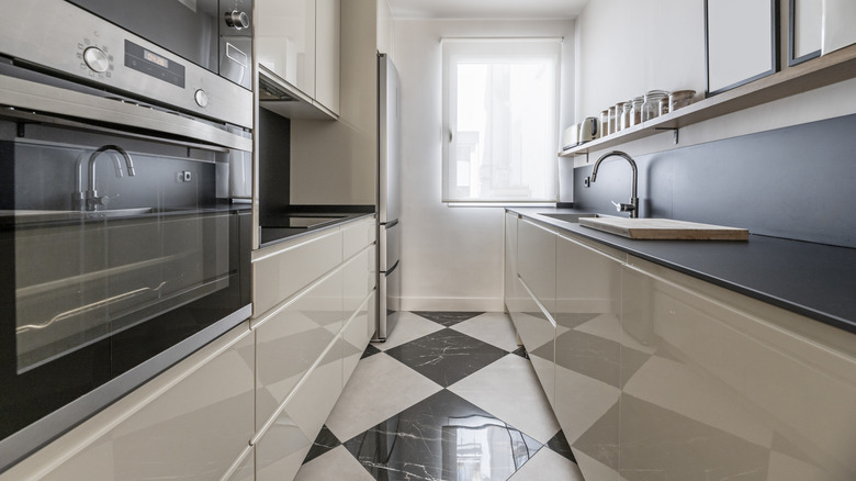 Famed HGTV network darlings — with Brent a member of Netflix's "Queer Eye" Fab Five to boot — the couple jokes that sometimes their design styles don't always match. However, Brent teasingly quips on Instagram, that "the one thing we'll always agree upon ... Checkerboard floors," tagging his spouse on a photo of black-and-white tiles. Berkus and Brent have repeated this stunning statement-making floor idea in several renovations since their appearance on "Rock the Block," including on HGTV's "Home Town Kickstart" in 2022 and more recently in the entrance of their own New York City home(a trending design detail you'll want to copy ASAP from the Berkus and Brent home, once you see it). The revival of this black-and-white design doesn't seem to be slowing down anytime soon, and with Berkus and Brent continuing on in their love of checks, it proves to be a fashionable and chic floor choice.