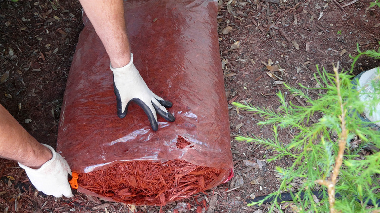 Avoid buying bags of mulch for large projects, as well as dyed mulch