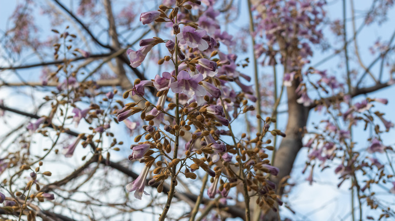 It's no surprise that foxglove trees (Paulownia tomentosa) are often referred to as princess or empress trees by fans of the plant — its petite, trumpet-shaped, purple blossoms look like something plucked right out of a storybook, and would likely look really lovely in a front yard. Sadly, though, it is an incredibly invasive species that outcompetes native plants for resources. Its robust roots can also damage to paving and even plumbing, making it a terrible candidate for landscaping near your house as it can damage your front walkway. It's not very princess-like, at all.
