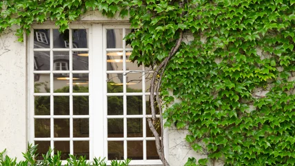 English ivy (Hedera helix) is a rapidly growing, invasive woody plant that escapes cultivation easily, spreading quickly on the ground and up building walls. While it looks very fairytale-like on the sides of homes, sadly, it can cause long-term damage. Its aerial roots can grow into vulnerabilities on the wall, exacerbating cracks, and it can even grow into gutters and eaves. Thick layers of ivy can also create humidity issues for your home as well, since your walls won't be able to breathe properly. Removal is incredibly difficult since it's both time-consuming and costly.