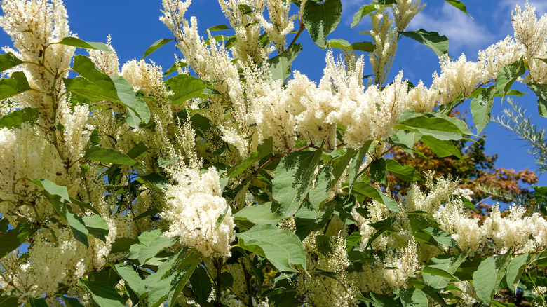 Japanese knotweed (Fallopia japonic) is an extremely prolific plant that grows similarly to bamboo, and much like its woody cousin, Japanese knotweed is incredibly invasive in the U.S. It drains resources away from native plants and easily takes over yards. If planted too near buildings, it's known to grow through cracks in concrete, shooting up through pavement, or even through concrete foundations. Knotweed is so prolific, that some measures of removal, like mowing, actually helps facilitate its spread; trying to get rid of it this way actually stimulates further growth. Thus, avoid introducing new knotweed altogether.