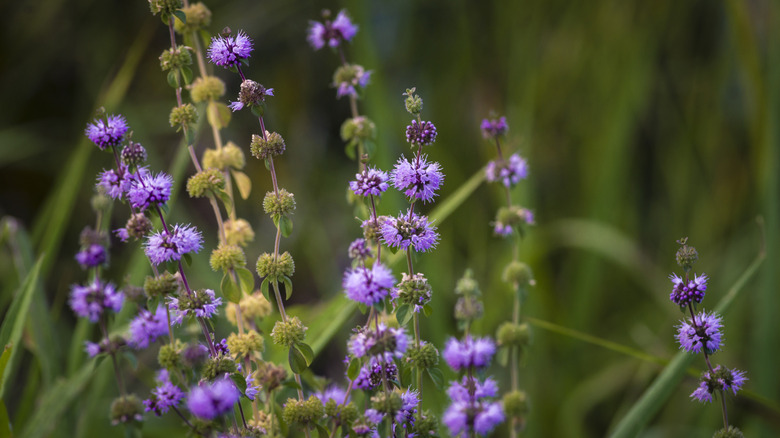 Pennyroyal (Mentha pulegium) is a hardy plant from the mint family that can grow up to 12 inches in height. It grows as dense mats and can be used as ground cover. Along with treating digestive system issues, pennyroyal plants can deter fleas and ticks as well with their strong spearmint scent. Grown in hardy zones 6 to 9, in the summer, pennyroyals bloom with clusters of whorled purple flowers. The blooms' delicate appearance contrasts well with other plants in the garden. Though helpful as a pest repellent, exercise caution as pennyroyal can be toxic to people and pets. It is also considered moderately invasive in certain parts of the western United States. Please check if it is invasive in your region