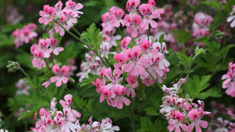 Rose geranium (Pelargonium graveolens) plants, grown in hardiness zones 10-11, have shown some possible flea and tick repellent properties, making them an option for your garden. They have five-petaled flowers that bloom in shades of pink and lavender, and their scent is said to calm nerves. While strolling through your garden, take a big whiff and know this plant is working to keep the pests away. It's important to note this plant is toxic to cats and dogs, though, so opt for a different option if you have pets.