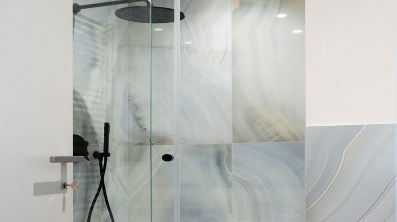 Besides being made from a particularly tough and long lasting material, this method of tiling gives a super dramatic and luxe feel to your bathroom. While many people opt for tiling on shower walls, one of the biggest downsides is having to clean the grout in between...and somehow it's always dirty. Because this method uses such large expanses of tile with grout only at the seams, it is much easier to keep clean. The Property Brothers have highlighted how porcelain slabs "do not require any maintenance like sealers or special cleaners," which is a huge benefit especially if you're a clean freak without a lot of time. These "book-matched" slabs can also be used as flooring, and doing so can amplify the luxury effect as well as maximize your return on investment. Plus, since it's made from porcelain it is pretty resilient to wear — even that from foot traffic — and it is particularly conductive, making it a great option for heated floors if you want to add another layer of spa-like energy.