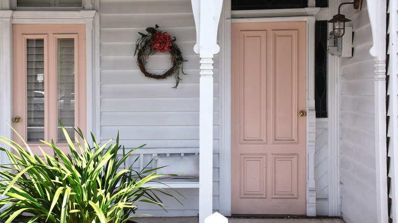 But saying "curb appeal" sounds vague. So, what tangible things can you do to really make a significant impact on your home's resale value? A well-maintained exterior is essential for making a positive first impression, including landscaping, hardscaping (like walkways and driveways), and even lighting. However, one of the other main components is the entry area, most notably the front door. In fact, according to a 2021 survey by Zillow Group, buyer feedback indicates it's worth taking the time to pick the perfect front door color to boost your home's curb appeal, and therefore the resale value, when it comes time to sell. While some front door colors scored high or were valued higher in terms of what potential buyers were willing to pay for a home, such as slate blue-gray and black, others had the opposite effect. So what color did the surveyed potential and actual buyers say they valued the least? The hue that had the biggest financial impact on the perception of how much they valued a home based on door color was pale pink. Let's dive into why this color scored the lowest and how much it is predicted to make a dent in your resale value.