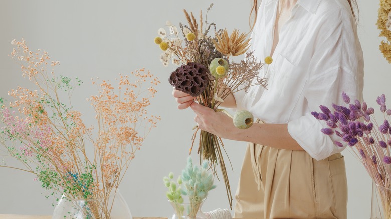 As a child of immigrant parents who regularly practiced a form of feng shui, I remember how my bed couldn't be oriented in certain ways or how I wasn't permitted to bring certain things into the house. It disrupted energy flow, and it could mean bad luck in the end. Feng shui — which translates to mean "wind and water" — emphasizes balance in one's surroundings, as well as a promotion of the "qi" (pronounced "chi") energy. The main elements as identified in feng shui practice (water, earth, fire, wood, and metal) must work in harmony with one another to achieve said balance. The qi energy, meanwhile, represents the life force energy present in all living things; it is with qi and a perfected combination of the elements that one may craft a living space that promotes good fortune. However, dried flowers have negative qi, making it one of the things that you should never have in your home, according to feng shui experts.