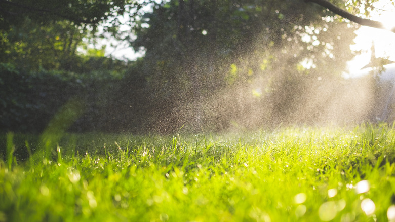 A well-kept lawn does wonders for a house's curb appeal, and while it may seem like an easy task to maintain decent-looking grass, it can come with unexpected challenges. While you may think it's just a matter of consistent watering, good fertilizing, or regular mowing, factors like weather, soil, and even watering at the incorrect time of day can make the most cared-for yard look like it's struggling. Before you run to the store to arm yourself with all the best lawn care tools or consider switching up your fertilizer, though, pause and try to tackle the easiest solution that'll give your lawn a boost: Watering at the most optimal time of day.
