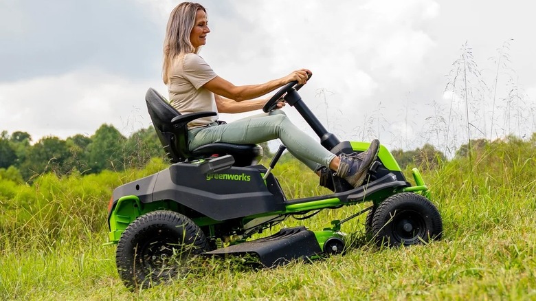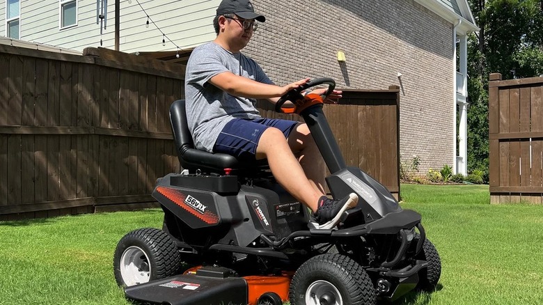 Depending on how large your yard is — or your own affinity for lawn work — learning how to drive a riding mower may be worth your while. Though these do have quite the jump in price from push mowers, you are paying for a much larger machine and an engine that not only has to cut the grass and move it's own weight, but also take you along with it. The Yardforce 56v LFP is battery powered which means you don't have to deal with the stink and sound that comes with a gas engine. Though it is more expensive than the previous model listed, it is also much more capable, as it can cover up to 2.5 acres on a single charge, and it has two speeds — 8mph for driving, and 5mph for cutting. It also even has cruise control and LED headlights so you can stay safe and visible if you have to take it close to the road.
