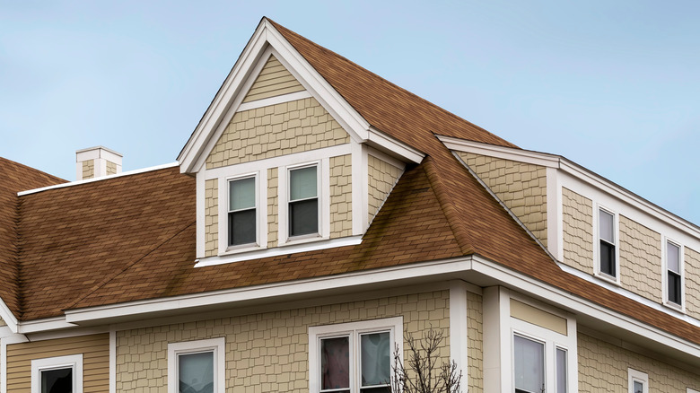One of the warmer options on the market, tan roofs are a popular color choice for bringing a variety of design styles to a home exterior. From traditional shingle roofs to modern metal, old world tile, rustic cedar shake, or European thatched alternatives, the aesthetic for a tan roof is all over the map, but they share one aspect in common — tan roof tones all share the same organic warmth that blends your home flawlessly into its natural surroundings and plays beautifully with every earth tone, neutral or colorful, in the book. So, whether you have an existing roof that you're working around or have fallen in love with a tan-toned material for a new roof, it is an extremely versatile shade to complement a wide range of exterior paint colors. Let's begin our list with neutral hues from light to dark, then work our way into more colorful alternatives, so you can easily select the perfect exterior paint color to pair with your beautiful tan roof.