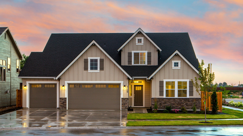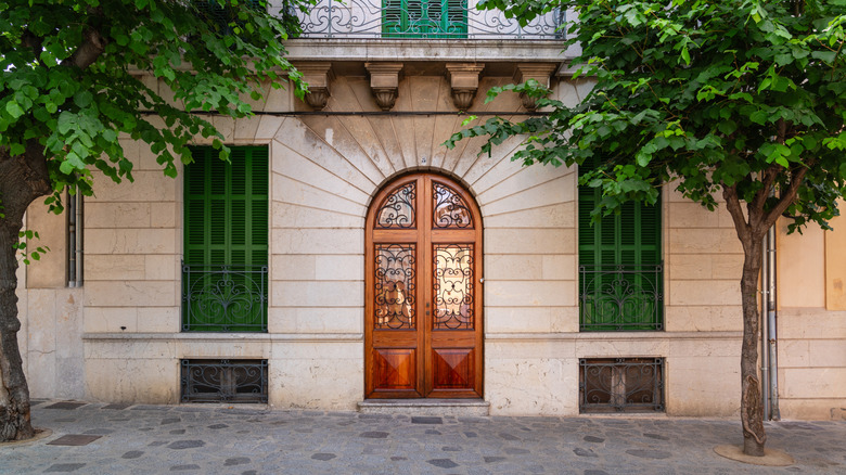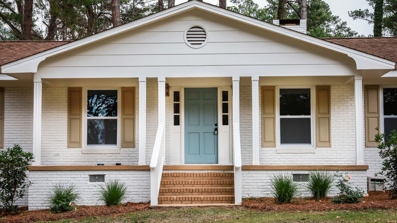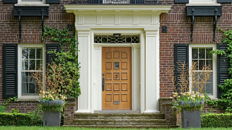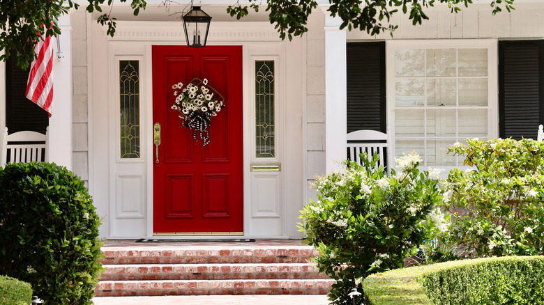 From classic farmhouses to modern town homes, there are certain palettes of door and shutter colors that instantly give an aesthetic boost to your home. Some color combinations may seem obvious — like white-on-white or black with neutrals — but that may mean you're leaning into a classic color combo that will stand the test of time and trends. Other pairings are fresh takes on color and style that can bring a new design language to your neighborhood. Pops of red on otherwise stoic brick, for example, can update your home in an unexpected, yet fashionable way. Regardless of which vibe you're going for, there's a perfect combination that's right for you and speaks to your personal design preferences.