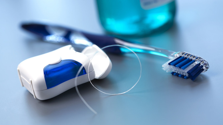 Dental floss is another culprit that you likely use in your bathroom often, but it's best to choose another brand of floss if yours contains PFAs (per- and polyfluoroalkyl substances). These chemicals are believed to harm your health, and according to the Environmental Protection Agency, PFAs can increase the risk of cancers, disrupt hormones, increase cholesterol levels, and decrease reproductive function. The tough part about floss is that companies aren't required to list its ingredients, so it's difficult to discern which brands use PFAs. The best rule of thumb is to get a plant-based dental floss like bamboo floss — especially if it is marketed as "PFAs free."