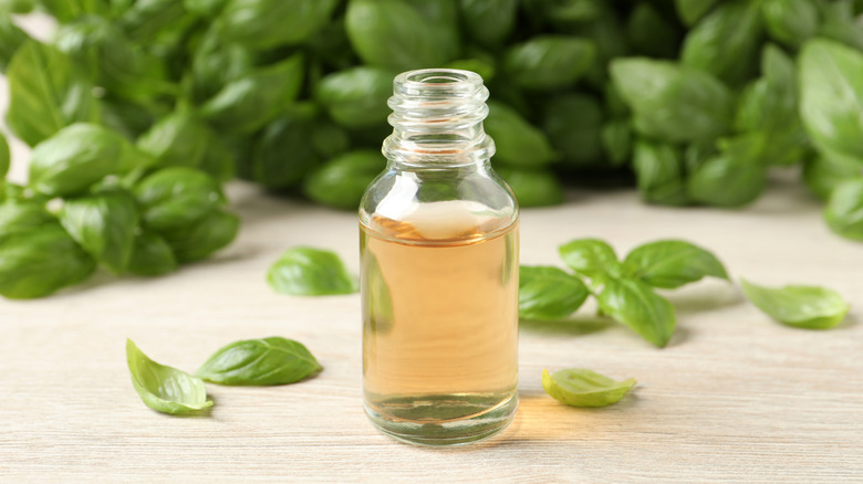 Basil (Ocimum basilicum) contains many of the same essential oils as clove and cinnamon, including eugenol, but also includes linalool, and cineole, another antifungal compound. Basil oil has been found to be a strong inhibitor of a number of fungi. Like the other essential oils containing eugenol, basil oil can cause skin irritation and allergic reactions similar to pollen allergies, so wear gloves and a mask while cleaning with it.