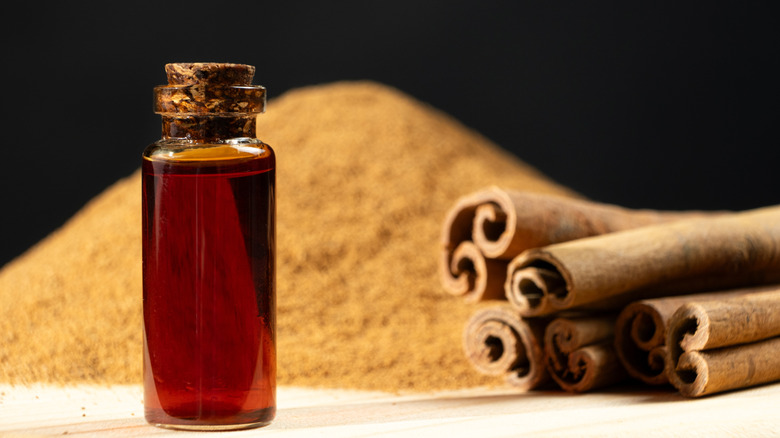 Along with clove, cinnamon (Cinnamomum verum) has many cleaning uses and is found in many cleaning and pest control products. It contains cinnamaldehyde, which can also be used as a pesticide and fumigant as well as a fungicide. Cinnamon oil can inhibit the growth of yeasts and other fungi, as well as kill bacteria like Staphylococcus aureus growing in or near the mold. Be sure to dilute the cinnamon oil, as undiluted it can cause eye and skin irritation. Keep pets away when using it as well, as the oil can be toxic to them.