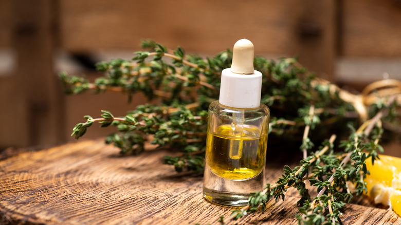 The essential oil from thyme (Thymus vulgaris) has been shown to control the growth of a number of fungi, whether directly applied to mold on surfaces or as a vapor. Like other essential oils, thyme oil should be diluted, as it can cause skin irritations. Containing thymol and carvacrol,, it's also an effective antimicrobial agent, so you can disinfect surfaces from bacteria at the same time that you remove mold.