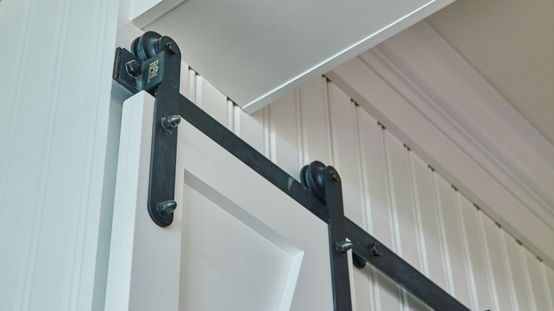 One way to install a barn door is, of course, to call a handyman or a company that specializes in installation, such as the in-home fitting available from The Home Depot. Alternatively, if you're keen to save money and aren't afraid of a little DIY, then you can actually install a barn door yourself. A great way to start this project off is by purchasing a barn door hardware kit, like this one from Amazon, which costs $39.99. Make sure to check the specifications of the kit before buying to confirm that it will fit in your space and over the existing sliding doors. In addition to the kit and the door itself, you will need a drill and suitable protective eyewear for this DIY.