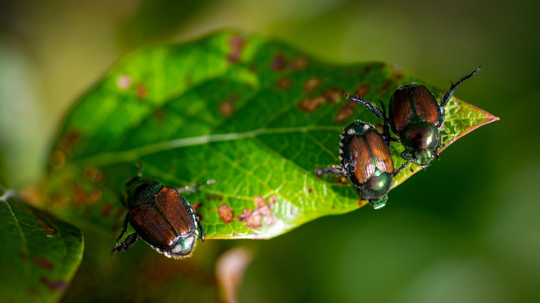 While some bugs on your plants may be sprayed with diluted soapy water, this strategy may not work against all pests. Such is the case with beetles and slugs. These types of pests can quickly cause widespread damage to your plants, so it's important to utilize methods that actually work. To that end, most experts recommend hand-picking these types of bugs from your plants. This isn't the most pleasant task, but it's the most direct method that will also do no harm to your plants. Having a bucket full of soapy water on hand helps to dispose of the pests without further hassle, as they will more easily drown in a soap and water mixture than in just water on its own. Who knows — this could end up becoming your preferred method of organic pest control in the garden.