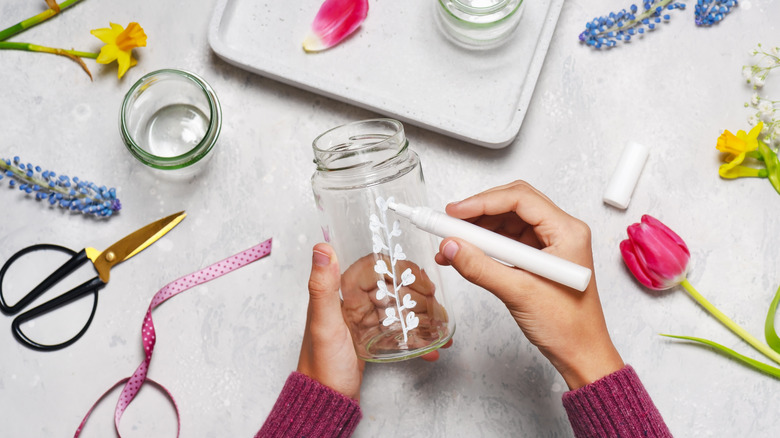 The first step is to clean the jar and remove the labels. If you're lucky, you'll be able to peel off the labels to reveal a smooth surface. However, if there's some adhesive left over, you'll need to remove the sticker residue from the glass. One simple method is to soak the glass jars in warm, soapy water for at least 20 minutes, then scrape off the residue with an old plastic card. If that doesn't work, try a citrus-based adhesive remover or rubbing alcohol.