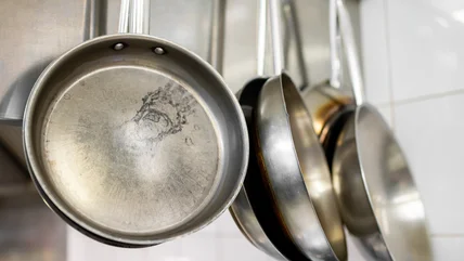 To prevent getting extra scratches, polish with the grain of the stainless steel. This can be hard to spot at first, but look close and you should be able to see faint lines either going vertically or horizontally — that is the direction you want to move the cloth. Finally, rinse the surface with water, then use a fresh microfiber cloth to dry and polish, removing any baking soda residue or water stains. For items that aren't cookware, you can apply some stainless steel polish or mineral oil to keep your stainless steel sparkling.