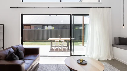 Shutters aren't just for farmhouses anymore. They're now a chic and practical way to make sure your indoor space feels perfectly private. And while you may be picturing the classic cabinet-style open set, there are actually a variety of different types you can use in front of your sliding doors. The first option is bifold. These shutters fold into themselves as you open them, meaning they store nicely on one or both sides of the door when not in use.