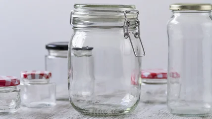 First, you'll need an empty 16- or 32-ounce Mason jar. Use one with a wide mouth, as it will be easier to fill than a regular-sized one. If your jar still has labels, take some time to remove adhesive residue from glass with rubbing alcohol, warm soapy water, or a citrus-based remover. Once the jar is clean and dry, open the cardboard box and remove the tissues, splitting the wad into two halves. A 16-ounce jar can store one of the halves, while a 32-ounce jar can fit most (if not all) of the box. You'll need to stack tissue halves on top of each other, but know that it might be a tight squeeze. After you've filled the jar, lift the first tissue through the opening. Your DIY holder is ready to use.