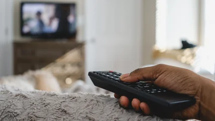 Moving the television out of the bedroom may even follow a newer movement in design. A flatscreen is among the many bedroom trends that are going out of style, according to designers. If you have space, create an undeniably fun media room in another area of your home. It is a much better idea to watch TV in another room in the house and go to bed when you're tired. Or, try something different to wind down from the day. Because blue light from the TV — and really any electronic device — can make it harder to fall asleep, turn off all electronic devices 45 minutes before bed. Do a calming activity such as reading a book, journaling, or trying meditation exercises to prepare for sleep, and thank yourself in the morning.