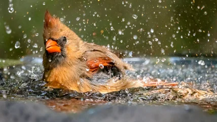 TikTok vlogger @lainalaine posted an easy tutorial on how to make a tomato cage birdbath. Spray paint a tomato cag in a color (or colors) of your choice. Paint a wide, shallow pan to match. Any pan will work, just be sure to use a non-toxic paint that is safe for wildlife. Water-based and acrylic paints that are labeled "environmentally friendly" are your best bets. Avoid oil-based paints, as they contain chemicals that can be harmful to birds. Once painted, seal it with polyurethane. Place the tomato cage upright in the ground where you've chosen to place the birdbath. Trim the cage using wire cutters, if necessary, to maintain stability. Place the pan in the top ring of the tomato cage and fill it with water. You can also add a solar fountain to keep the water from stagnating.