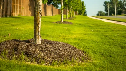 Mulch that is too close to trees and shrubs can spread disease or infestation. Limit your use of mulch around trees and shrubs by keeping it at least 3 inches away from their trunks. The moisture in mulch pressing against a plant's bark can increase the chances of it rotting, decreasing the plant's ability to protect itself against pests and disease. That loss of its outer layer of protection is one of the leading causes of the death of shrubs such as rhododendrons, azaleas, mountain laurel, and boxwoods, and trees such as dogwoods, cherries, birch, and holly. Using pine bark doubles the danger, since bark from conifers actually contains fungi that can cause root rot in shrubs and trees.