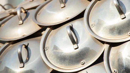 Many people toss old, damaged pots and pans because they're not sure how to fix them, or because the restoration process wears their patience thin. Though it's possible to repair rusted enamel pots and remove burned crusts from pans, the longer you wait to address the issue, the more elusive success may be. If you do get rid of a ruined pan, or if a pot disappears for some other reason, don't automatically throw away its lid. Instead, transform it into a wind chime with a bit of wire or string and a few other materials. In addition to adding soothing sounds and visual interest to your yard, a wind chime can scare away deer, raccoons, and other creatures eager to nibble your garden's plants or rummage through your garbage can.