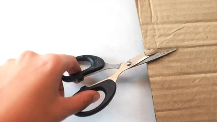 Finally, mark the top center of the rectangle and draw a line from the uppermost middle point down to the horizontal line you created to form the triangle of the tree. Now, you have an ornament template to work with, which can be repeatedly traced onto cardboard scraps as desired. To minimize cardboard waste and/or efficiently make many trees with fewer cuts, alternate right-side-up templates with upside-down trees directly next to each other, as this template is designed to nest right together like on TikTok. Cut out all cardboard trees to form the foundation for the DIY tree ornaments.
