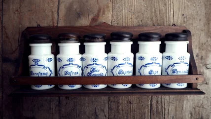 Once you have a vintage spice rack in hand, it's time to upgrade the aesthetics. As with any painted vintage piece, it's advisable to test for lead paint before proceeding with any project. When you know it's safe, begin by removing the old finish from the piece with an electric sander. Assuming the piece is wood, you can then apply a fresh coat of stain to give it an updated look, but paint is also a great option. Since the organizer will be placed in the bathroom, you will likely want to apply a matte sealer to prevent moisture damage from spills or splashes.