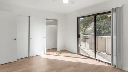 Sliding glass doors are a tricky fixture in your home that can cause several headaches when trying to make them work as the highlight they can be. They're a great source of light and a nice view to the outside, all while being a convenient entrance and exit to your home. However, when they come with the cheap blinds most rentals often bring, sliding glass doors can be ugly, let in light weirdly, block your view, and might not even let you use the door without lifting them. If you're trying to capture a more classy feeling tied in with function, you can instead turn to curtains with stylish uplighting underneath them.