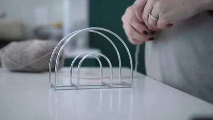 Several napkin holder designs can dress up a modern tablescape. If you prefer a more eclectic vibe, take another route and turn Dollar Tree wire holders into cozy, bohemian accents. Start by tying yarn or twine at the bottom of the napkin holder, and wrap it around the curved metal. Use brightly colored yarn for a more eclectic look, or opt for twine for a more rustic vibe. Tuck this holder in a kitchen shelf or counter corner, and use it to prop up decorative dishes.