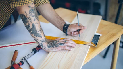Before starting this DIY, make sure you have the three essential woodworking tools for beginners. The first step is cutting the scrap wood into the desired shape and size. It shouldn't be too small or too large and must be proportionate to whatever surface it will be used on. As a general rule, smaller trays suit countertops, while larger trays are more fitting as table centerpieces. There are many wood cutting tools out there, but circular saws or jig saws are the best option for beginners and creative DIY projects. Once you cut the piece of wood, make sure you sand down the edges with an orbital sander.