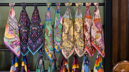 Another repurposed scarf idea transforms them into elaborate wall art. Measure the neckwear's dimensions and find an acrylic frame that is slightly larger than it. Michaels' 20" x 20" Wexel Art Double Panel Clear Acrylic Floating Wall Frame is large enough to hold designer scarves with room to spare. Flatten a creased scarf before hanging it up, but be careful not to make wrinkles if it's made of delicate material.