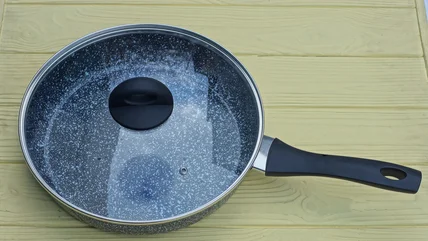 If the handle breaks off your pot lid while you're cooking, you might think there's no way to save it and that it's destined for the garbage. Luckily, there are several smart ways to use lids from old pots and pans around the house instead of tossing them. For example, you can make an adorable and functional piece for your kitchen. Even if the handle is busted, that old pot lid can be upcycled into a decorative dish for your kitchen counter. You might use it as a fruit bowl, a display tray, or even a catch-all for odds and ends that clutter your counter space. Both metal and glass lids will work for this project. In addition to your old lid, you'll need a cup, glass, bottle, mug, or old dish to form the base of your display stand.