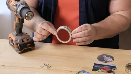 First, use your jar lid to trace a circle around your photos and cut them out. Depending on the type of lids you're using, there are a few options for this genius DIY to display photos without frames. With food jar lids, the picture should sit inside the lid, so that the rim is around the image. Mason jar lids provide more variations because of the removable ring. You could use only the metal rings to hold your photographs. With these types of lids, not using the flat middle piece allows you to face the picture through the jar lid. The lip of the ring borders your picture, creating a beautiful framed look. Alternatively, glue the flat lid inside the ring to get a similar style to food jars.
