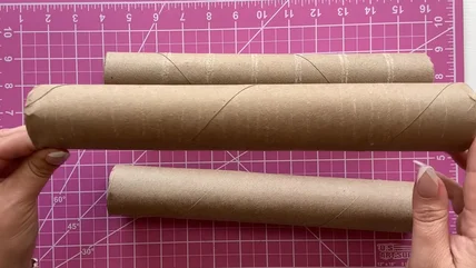 Crafting this project doesn't take much effort or money to complete. Simply cut two paper towel tubes in half. You'll also need a PVC pipe that's around the same width as a paper towel roll, about 1.5 to 2 inches, and cut it to five inches tall to match. Sand down the pipes with 220-grit sandpaper, so they're easier to paint. Keep in mind that the plastic pipes are only necessary to keep the centerpiece standing upright. Cardboard tubes are flimsy and lightweight, so they don't have the strength to stay standing on their own.