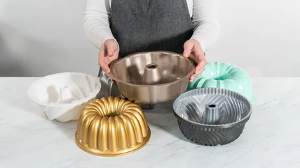 Bundt pans are a step above traditional baking pans, as they have a lot more personality. These specialized bakeware sets have unique shapes, usually with fluted edges. The stylish edging gives finished cakes a unique look and bakes them more evenly. In addition to expanding your baking technique, Bundt pans can be repurposed in various other ways around a home, far beyond a kitchen. You can even transform thrifted Bundt pans into high-end pieces of decor, like classy dining or living room centerpieces. With a can of spray paint, any Bundt pan can become a complementary piece for your interior design.